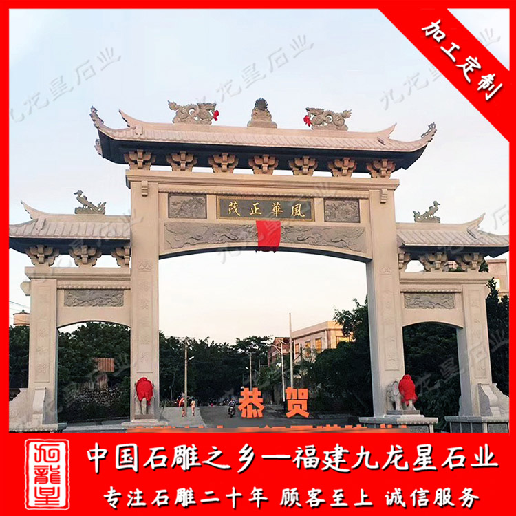 石雕牌坊(石牌坊廠(chǎng)家加工新農(nóng)村石牌坊 農(nóng)村入口石牌坊款式)——九龍星石業(yè)