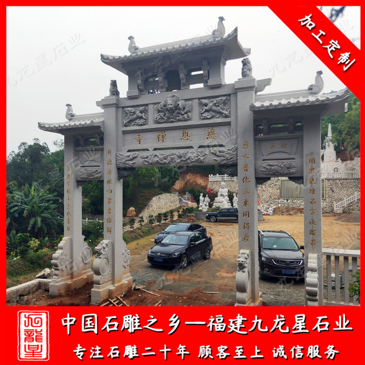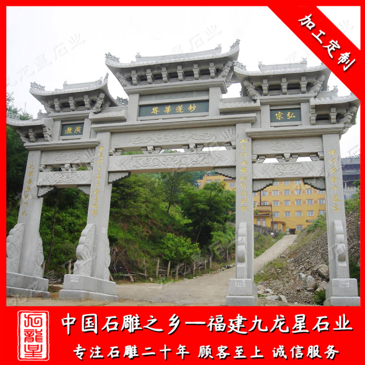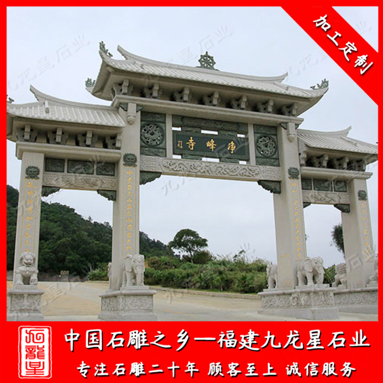 石雕牌坊(寺廟石雕牌坊 花崗巖牌坊圖片 三門石牌坊設計廠家)——九龍星石業(yè)