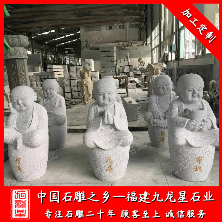 當(dāng)我們進(jìn)入寺廟的時(shí)候,經(jīng)常會(huì)看到寺廟兩邊擺放一些比較特別的石雕小沙彌,小沙彌形象一般都是小孩童的樣子,比如早些年由釋小龍和郝邵文演的小和尚電影,其小沙彌形象深入人心。 石雕小沙彌,在雕刻上石材種類很多,總的來說以花崗巖、大理石、青石等等。