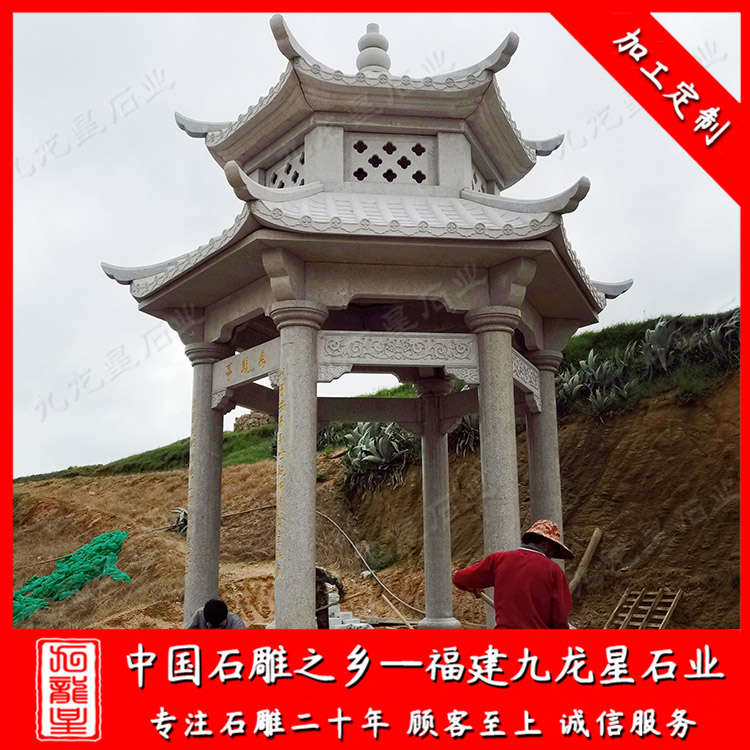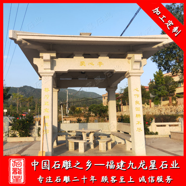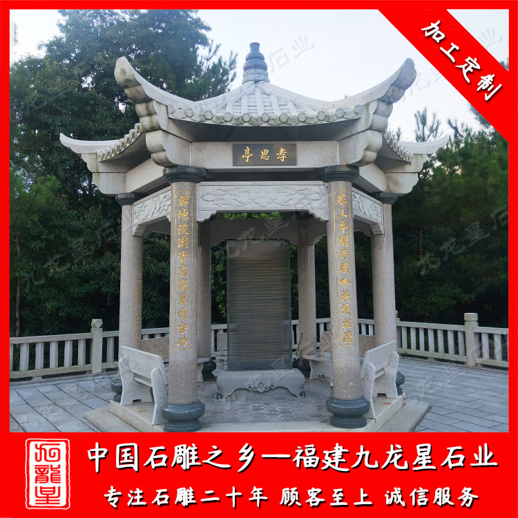 石雕涼亭(戶外石亭子廠家批發(fā) 墓園石雕涼亭 墓地石亭子報價)——九龍星石業(yè)