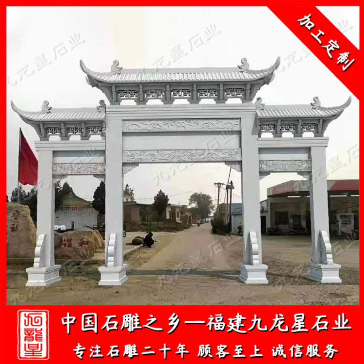 石雕牌坊(石雕村牌坊廠家雕刻 三門村口石牌坊 批發(fā)石牌坊)——九龍星石業(yè)
