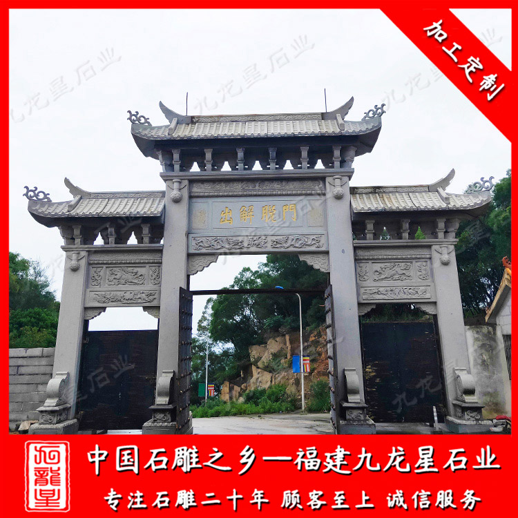 石雕牌坊(惠安石雕牌坊廠家 雕刻寺廟石雕山門 三門石雕牌坊)——九龍星石業(yè)