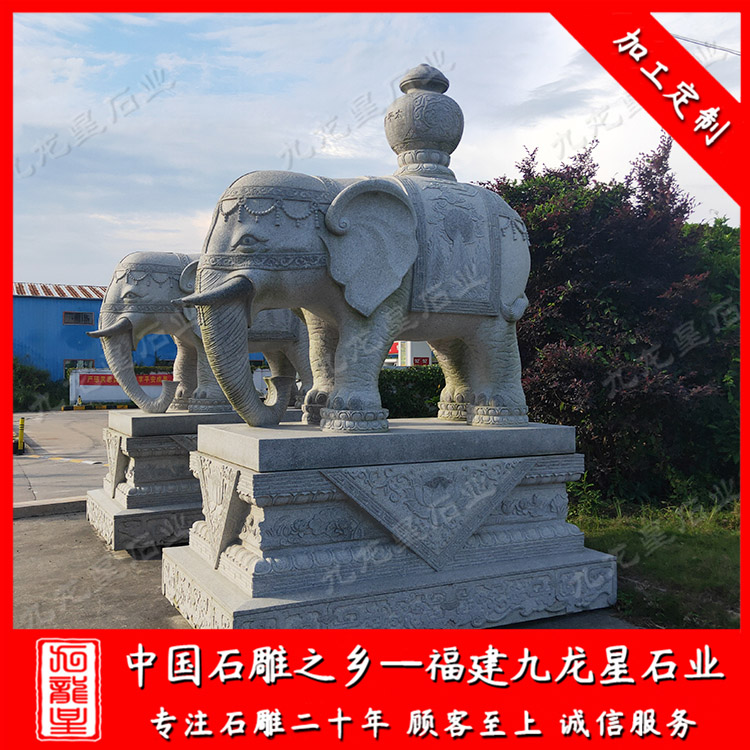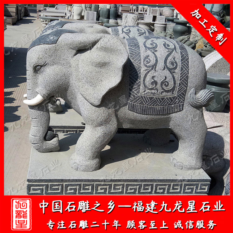 石雕大象(廠家石雕大象效果圖 陵園石雕大象一對(duì))——九龍星石業(yè)