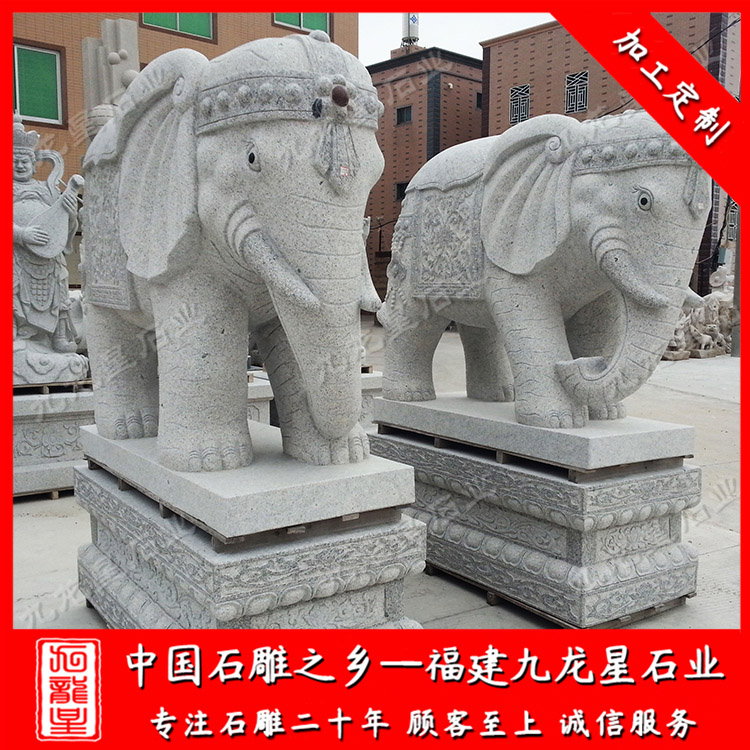石雕大象主要作用是在鎮(zhèn)宅的時(shí)候保佑先人安寧祥和,平安吉祥,招財(cái)進(jìn)寶等。一般擺放的方式是在陵園的左右一側(cè)分別擺放一只石雕大象,具體的方位并沒(méi)有特別的要求,只需要在大象前面放一盆水即可,但是zui好經(jīng)常進(jìn)行換水的工作。但是對(duì)于旁邊的樹木有忌諱,特別是柳樹和槐樹,這種陰氣非常重的樹是不合適靠近石雕大象的周邊的,一般出現(xiàn)這樣的事,很可能導(dǎo)致陰氣過(guò)重讓石雕大象失去效用,也會(huì)過(guò)早的讓石雕大象出現(xiàn)損壞等情況。