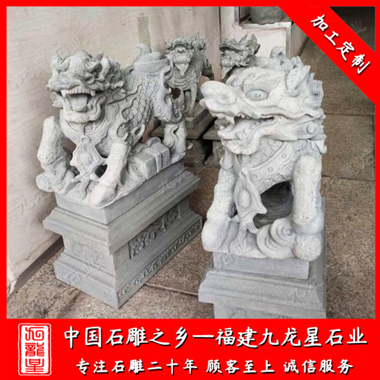 石雕麒麟(一對(duì)石雕麒麟擺件 大門(mén)口石雕麒麟寓意)——九龍星石業(yè)