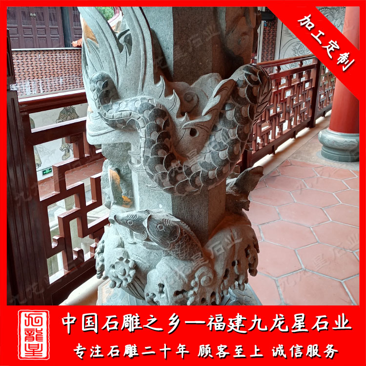 九龍星石業(yè)雕刻的石雕龍柱、石雕盤龍柱,巨龍氣勢(shì)昂揚(yáng)、盤旋在石柱柱身上,匠心制造,細(xì)節(jié)雕刻到位。龍身與柱體貼合恰到好處,整體線條上下一氣呵成,整體看上去霸氣十足。