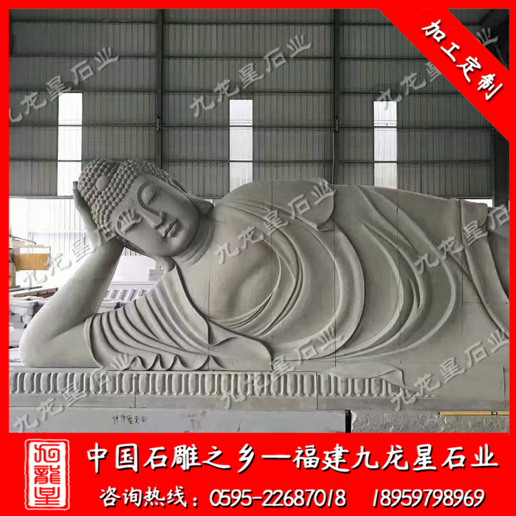 釋迦牟尼佛像常用石料為優(yōu)質(zhì)花崗巖、青石、漢白玉精雕細(xì)琢而成。石佛,佛教石雕佛像的簡(jiǎn)稱,釋迦牟尼作為佛教創(chuàng)始人,人們雕刻的佛像,“千佛一面”都以他為標(biāo)準(zhǔn),數(shù)量 多。肉髻凸出、飾波發(fā)、面容圓潤(rùn),雙目微啟、表情莊重、和藹、淡泊,還有一絲不易察覺的笑意,給人以撫慰關(guān)懷的親切之感。著通肩袈裟,手施與愿、無畏印,以及其概括的整體造型與變化多端的鏨刻手法,結(jié)合傳統(tǒng)的點(diǎn)擊工法,使得作品臉、手、衣、帶乃至云、花、座在不同肌理效果的對(duì)比中呈現(xiàn)出既豐富多彩又高度統(tǒng)一的嶄新面貌。