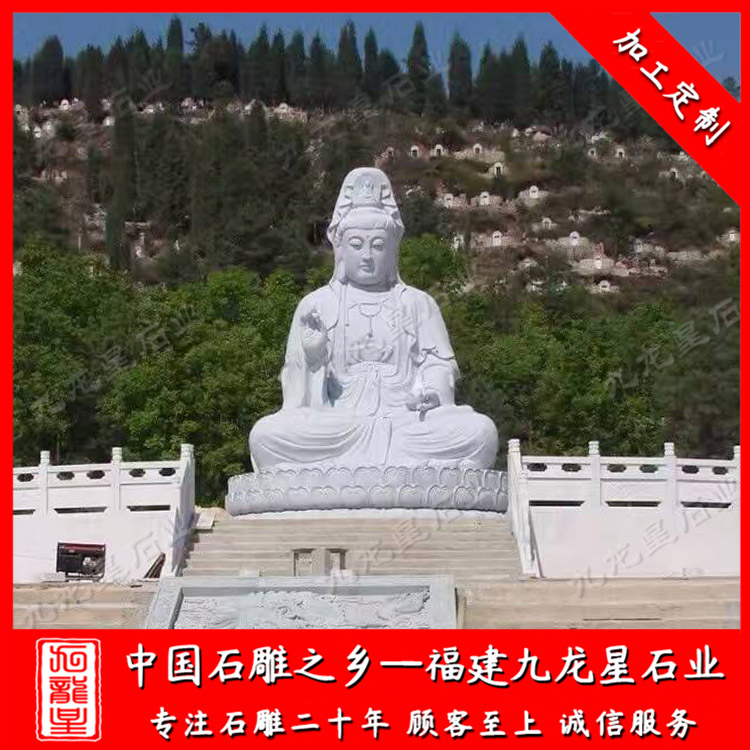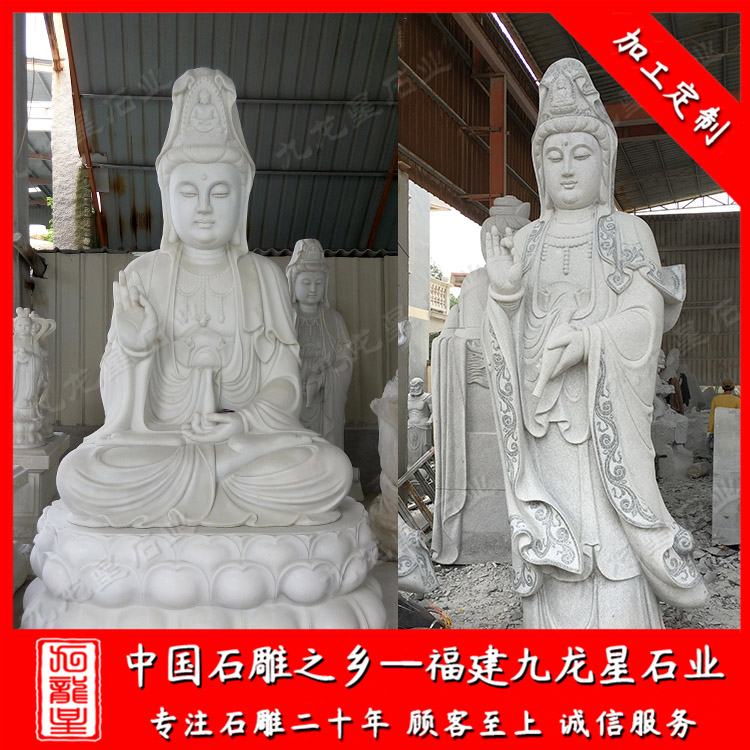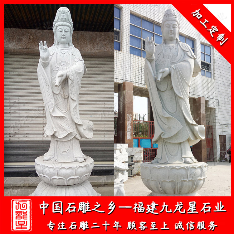 石雕觀音(站姿的石雕觀音圖片 廠家石雕滴水觀音體型豐腴)——九龍星石業(yè)