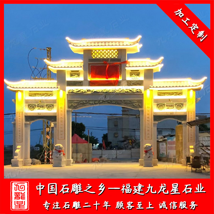 石雕牌坊(定做石雕村牌坊 九龍星批發(fā)花崗巖村牌坊)——九龍星石業(yè)