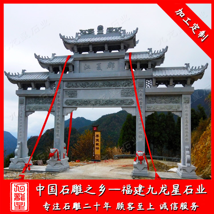 九龍星石業(yè)常年批發(fā)石雕牌坊、石雕村牌坊、景區(qū)石雕牌坊、寺廟山門牌坊、墓園牌坊等等,歡迎咨詢我們定做。
