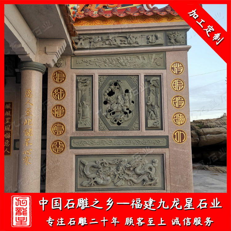 寺廟宗祠浮雕墻圖案設計 廠家雕刻石材浮雕墻壁