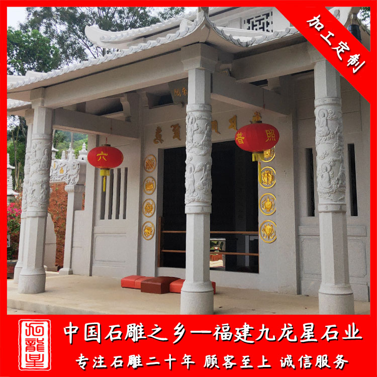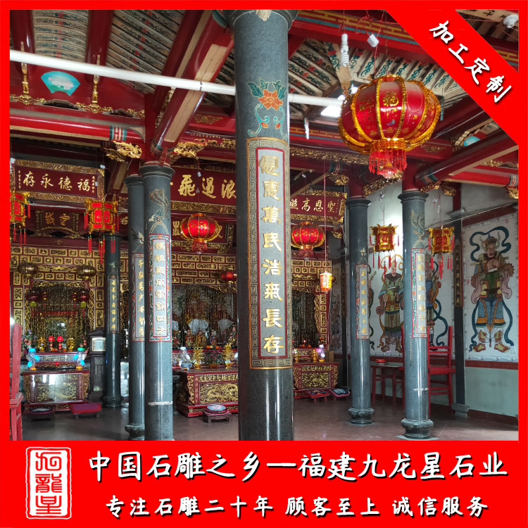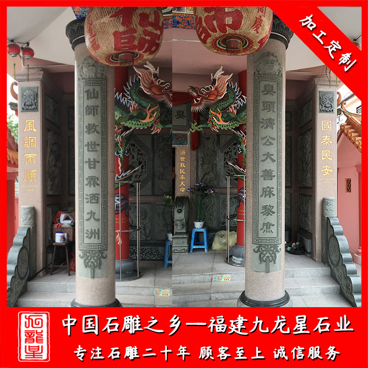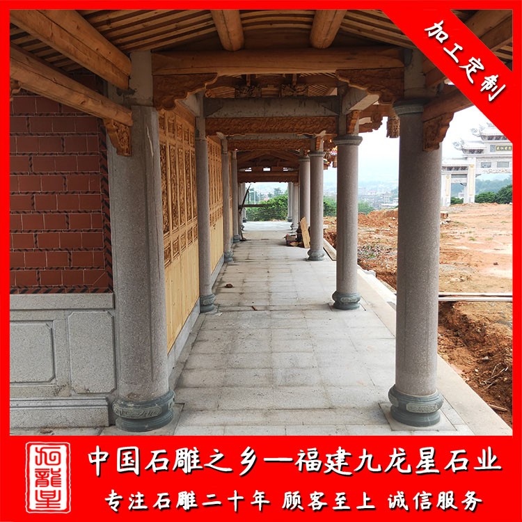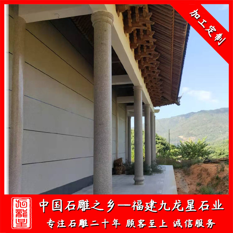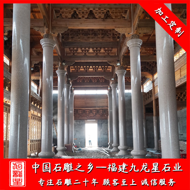 石雕柱子(石材圓柱加工廠家 雕刻寺廟石雕圓柱 宗祠祠堂石材圓柱)——九龍星石業(yè)