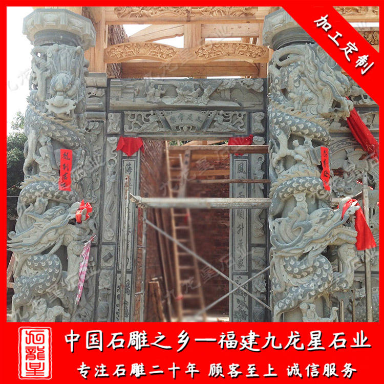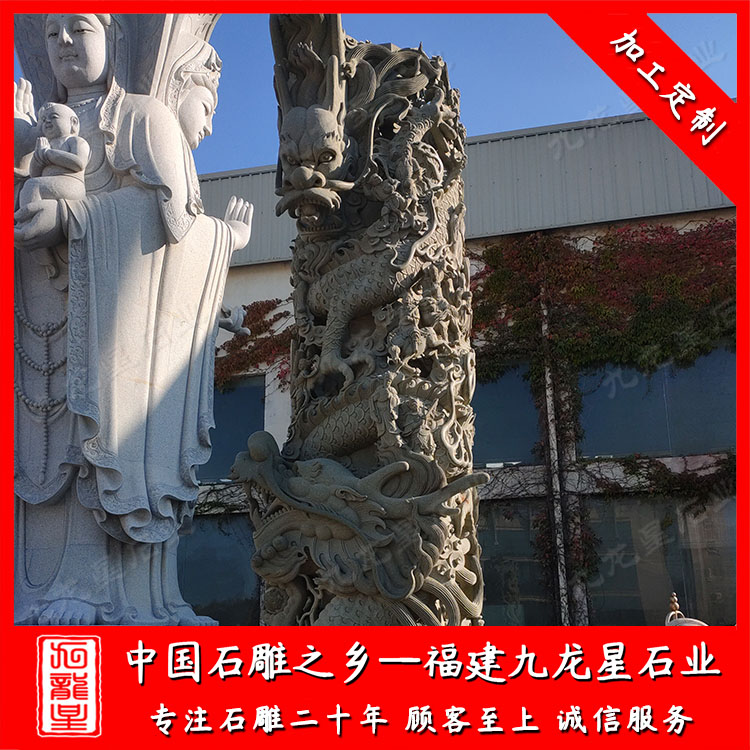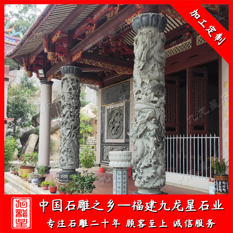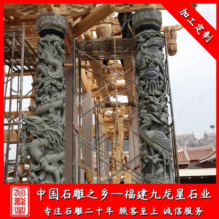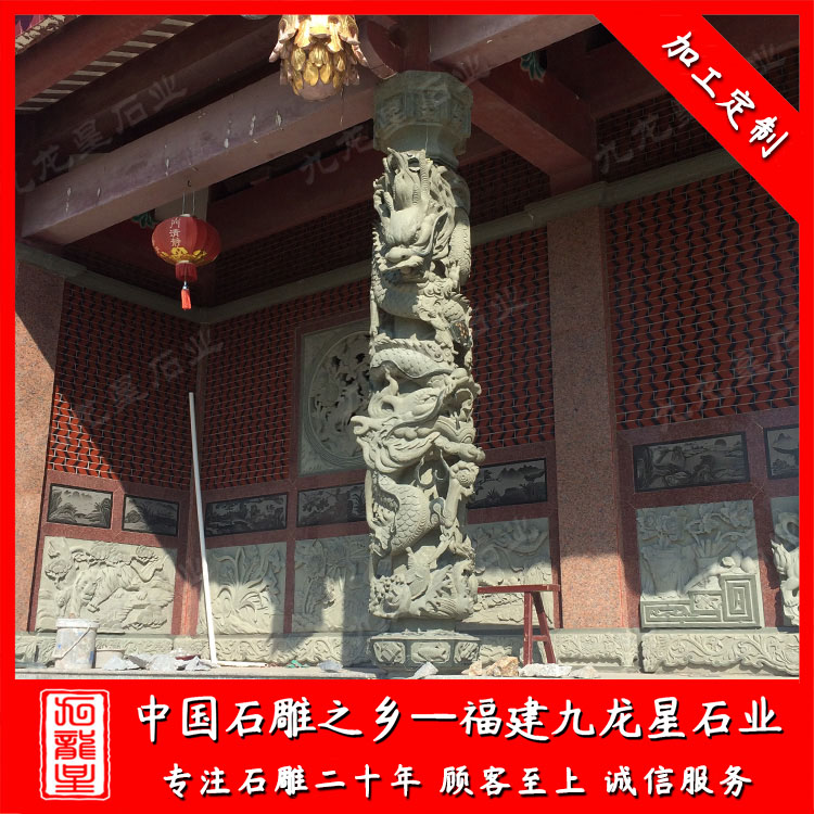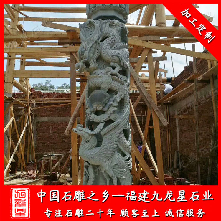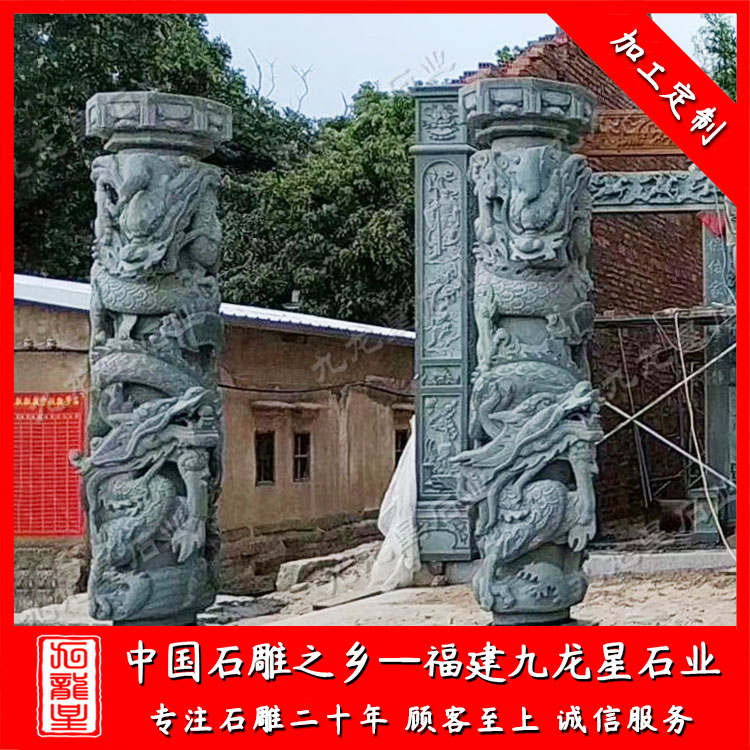 石雕龍柱(祠堂青石龍柱定做廠家 批發(fā)石雕石雕龍鳳柱)——九龍星石業(yè)