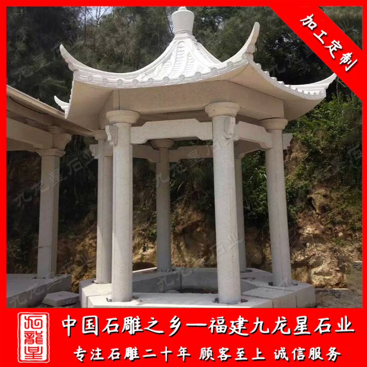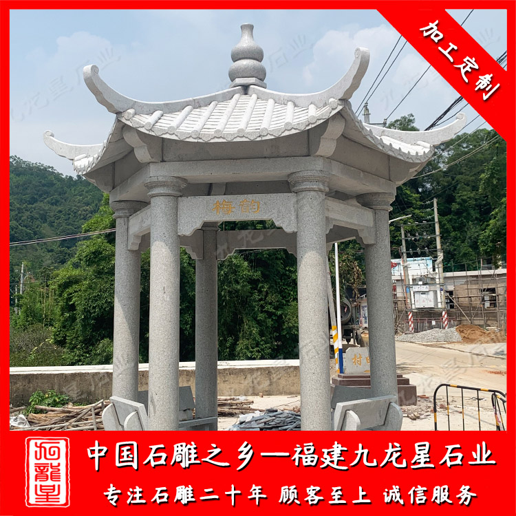 石雕涼亭(新農(nóng)村村口石材涼亭 六角石涼亭廠家安裝)——九龍星石業(yè)