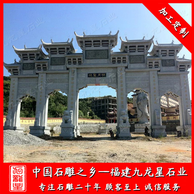 祠堂石牌坊廠家雕刻的家族宗祠石牌坊款式以三門(mén)三樓的家族宗祠石牌坊居多,因?yàn)榧易遄陟羰品豢钍蕉ㄗ龅娜硕?。三門(mén)三樓家族宗祠石牌坊受到村民們、族人青睞的原因是,三門(mén)三樓家族宗祠石牌坊、三門(mén)三樓祠堂石牌坊占地面積較五門(mén)的大型石牌坊小很多,而三門(mén)三樓石牌坊建造出來(lái)所呈現(xiàn)的效果也不失于五門(mén)石牌坊,另外三門(mén)三樓家族宗祠石牌坊、三門(mén)三樓祠堂石牌坊的性?xún)r(jià)比也較高。