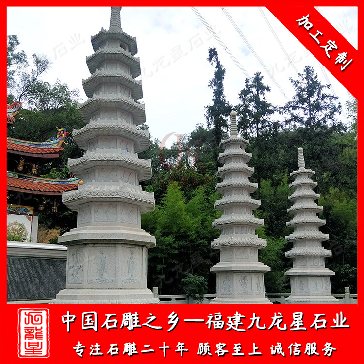 在我國(guó)寺廟中屬于寺廟的一個(gè)標(biāo)志性的建筑物。有能力的香客會(huì)捐造一座石雕佛塔,這對(duì)捐造石雕佛塔的人和寺廟都是一件功德無量的大事,也是為佛教文化做出自己的一份貢獻(xiàn)。寺廟石雕佛塔對(duì)于我們來說是一座神圣的雕塑建筑,有著它神圣的意義。有這么一種說法,石雕佛塔是佛陀菩薩的“居住”的地方。