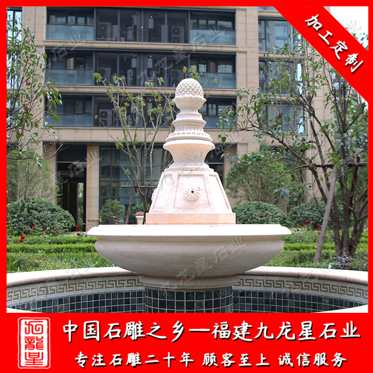 石材噴泉景觀、大理石噴水石雕景觀的直徑有1.8米、2米、2.3米、2.5米、2.8米等尺寸。露天安裝在各個景點的入口、園林公園醒目之處、酒店大門口、小區(qū)入口等地方。