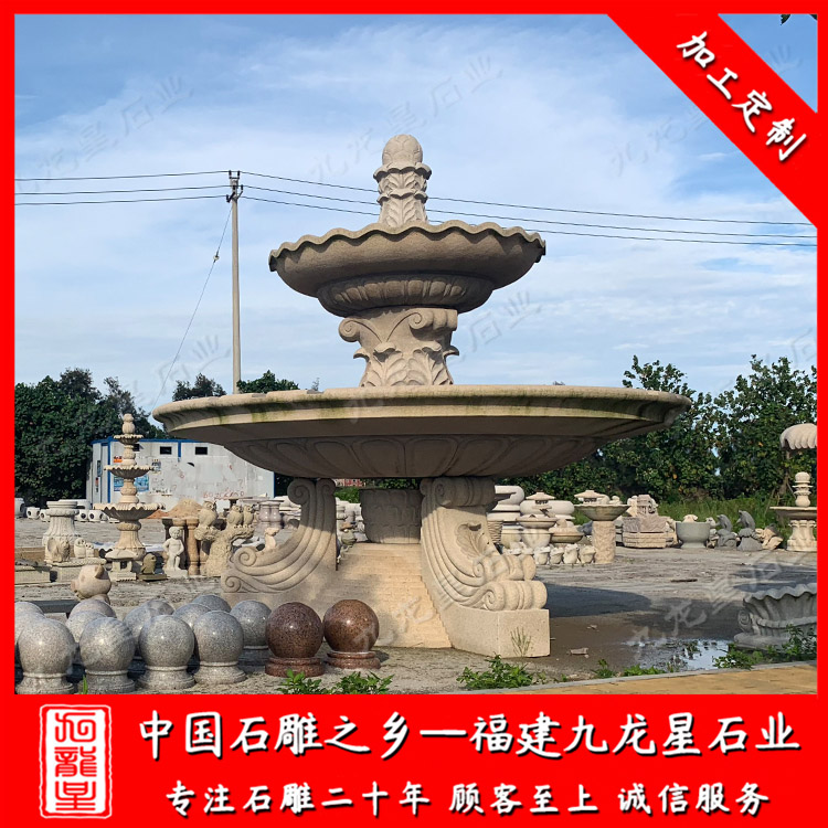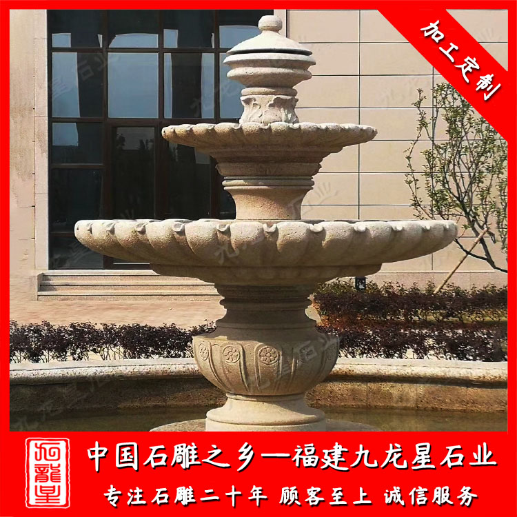 景觀石雕噴泉也被人們稱(chēng)為石材水景噴泉,近些年來(lái),定做雙層石材水景噴泉的人尤為多。雙層石材水景噴泉造型也是各式各樣。