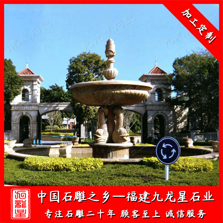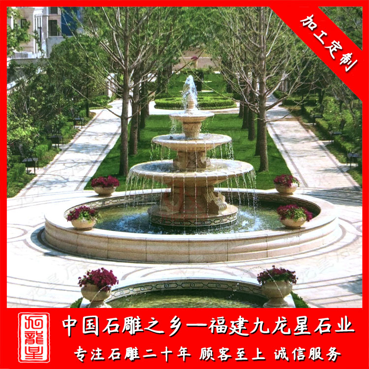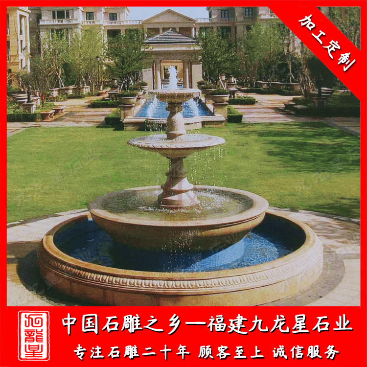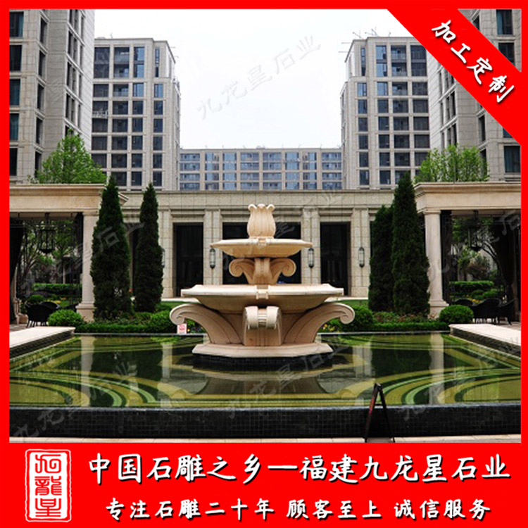 大型石雕噴泉水缽、黃銹石水缽?fù)ǔ1粡S家安裝在場地較大的地方。例如景區(qū)廣場、小區(qū)的入口或小區(qū)中心地帶、酒店大門口、大型商場的入口等等。黃銹石水缽圖片、大型石雕噴泉水缽因?yàn)槭谴笮偷乃詮S家在雕刻時(shí)候一般設(shè)計(jì)成雙層、兩層的造型。搭配花瓣、天鵝、獅子、大型、菠蘿頭、蓮花頭、噴水魚等雕塑,做以修飾裝飾。有的還會在周邊擺放石雕花缽花盆,種下綠植,更是使得大型石雕噴泉水缽 黃銹石水缽圖片更加的有魅力。