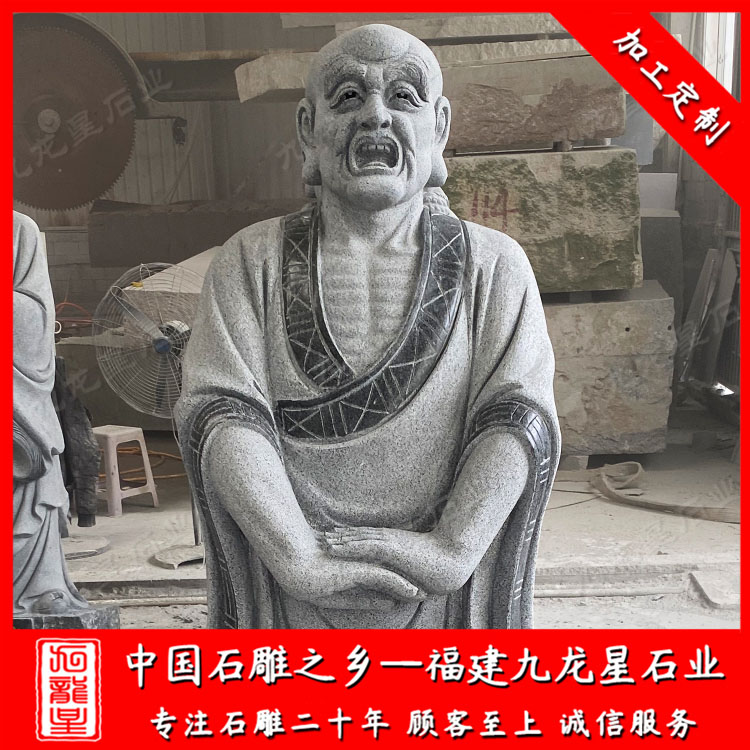 石雕十八羅漢廠家如何加工18羅漢石像的呢?石雕十八羅漢廠家加工18羅漢石像,與加工常規(guī)的石雕人物、石雕佛像的流程差不多,其不同之處在于石雕十八羅漢廠家加工18羅漢石像有18尊,這18尊石雕十八羅漢的造型、表情神態(tài)等都是不一樣的。這就需要加工雕刻的石匠要將身體姿態(tài)加工到活靈活現(xiàn),同時(shí)臉部表情要與經(jīng)文中所描述的十八羅漢造像差不多。
