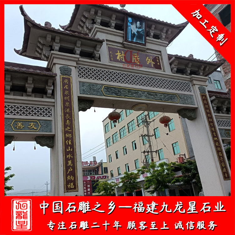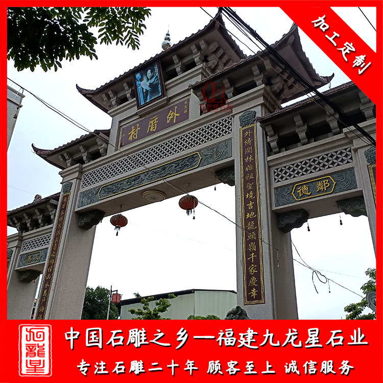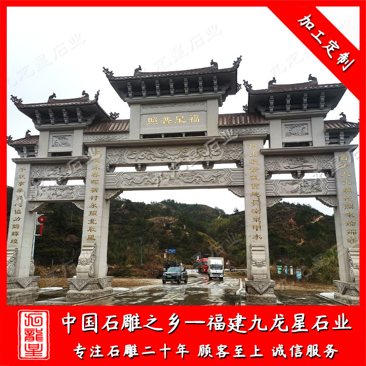 石雕牌坊(農(nóng)村石牌坊大門圖片 福建村口石牌坊廠家雕刻)——九龍星石業(yè)
