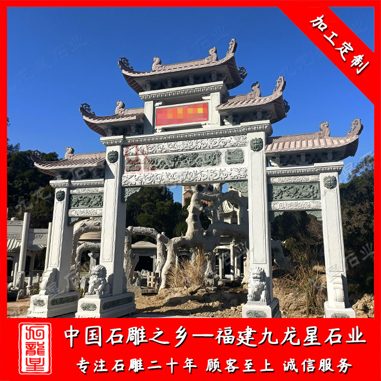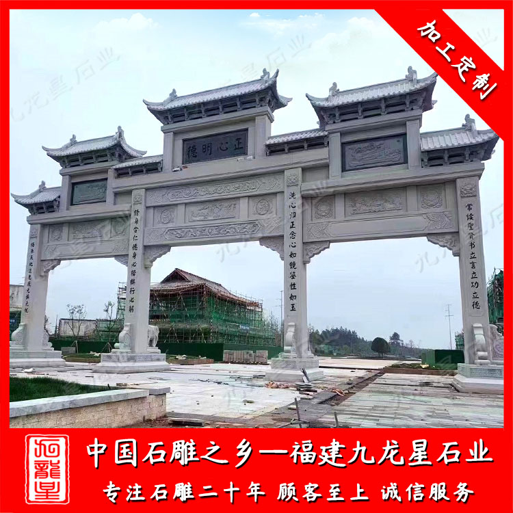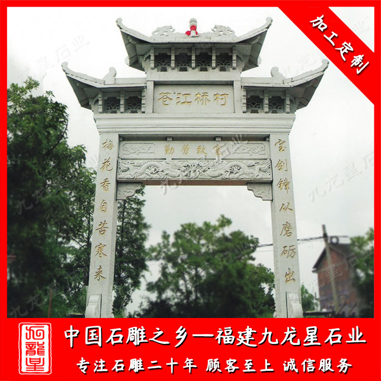 石雕牌坊 您現(xiàn)在的位置: 九龍星石業(yè) > 石雕牌坊 > 農(nóng)村石牌坊大門圖片 福建村口石牌坊廠家雕刻