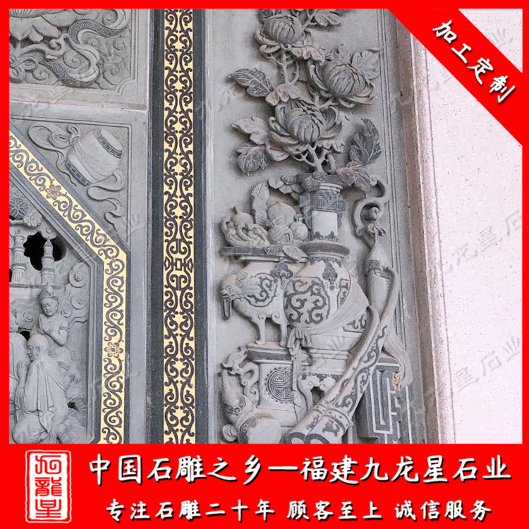 無(wú)論是寺廟寺院的青石浮雕雕刻花鳥(niǎo)壁畫(huà),還是宗祠祠堂青石浮雕雕刻花鳥(niǎo)壁畫(huà)都古香古色,古樸典雅。