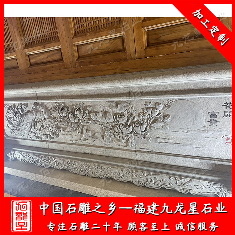 青石浮雕雕刻花鳥(niǎo)壁畫(huà)我們經(jīng)常在寺廟大殿內(nèi)的墻壁上面,寺院外墻門(mén)面上、宗祠祠堂的室內(nèi)或外墻上面看到。
