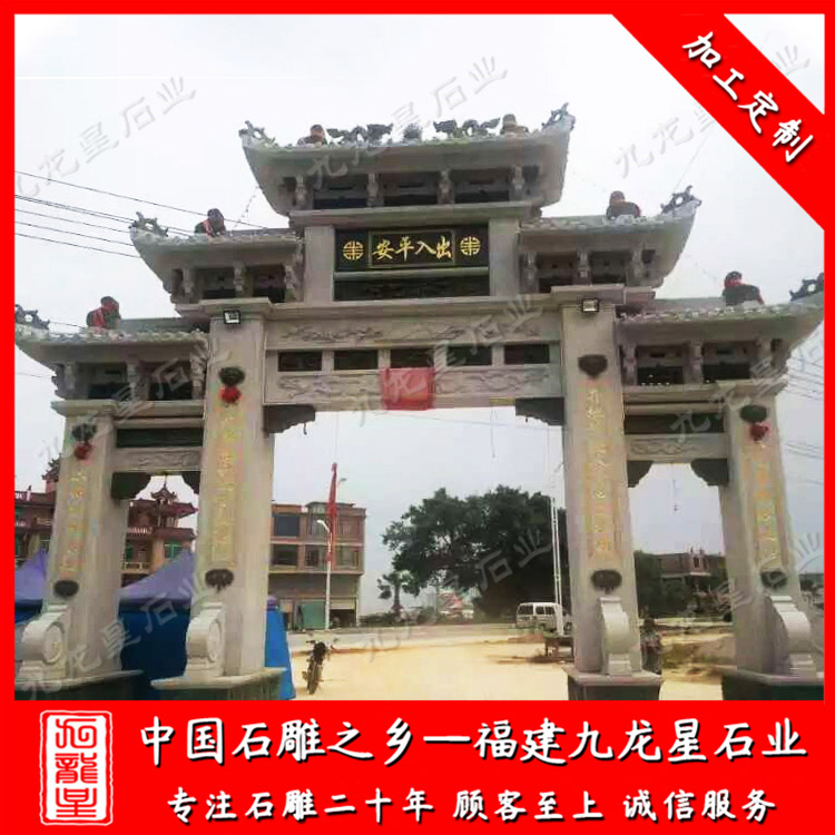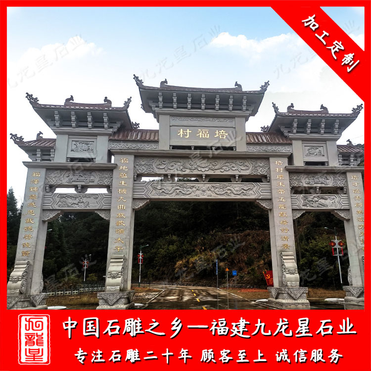 石雕牌坊(美麗鄉(xiāng)村石牌坊圖片大全 村莊路口石牌坊廠家)——九龍星石業(yè)