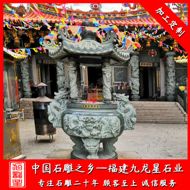 寺廟宗祠石雕香爐圖片 大型石雕香爐報價多少)——九龍星石業(yè)