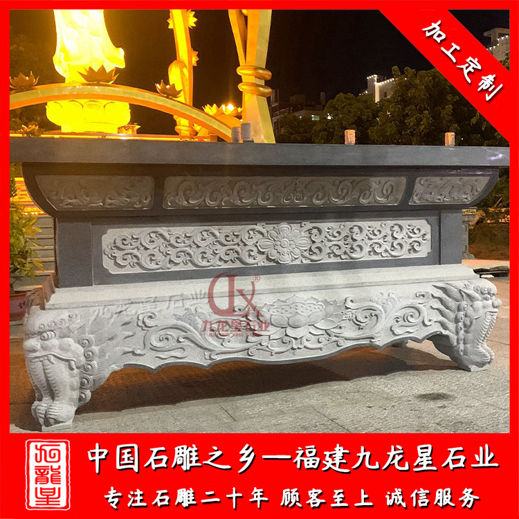石雕供桌(青石供桌定做尺寸 廟宇青石石雕供桌廠家)——九龍星石業(yè)