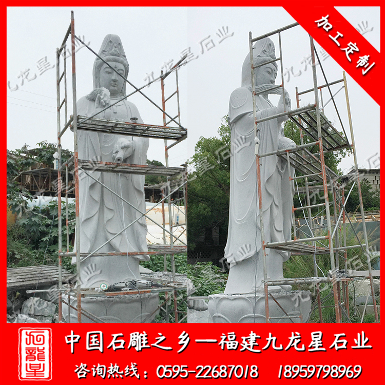 第一:石雕觀音像的建造材料有青石、花崗石、大理石、燕子石、漢白玉等石材。漢白玉石材建造觀世音富有光澤感和通透感,建造成本稍高;而花崗石和青石建造的觀世音也是最為常見的,表面有磨砂的質(zhì)感,為青白色的居多。對(duì)于建造規(guī)模大的石雕觀音像的雕刻來說,選擇花崗石材在價(jià)格上較為優(yōu)惠。大理石石材建造的觀世音像,表面看上去平滑,紋理也非常的柔和,且大理石的名品種類高達(dá)三十余種,可建造出不同造型以及樣式的觀世音像。